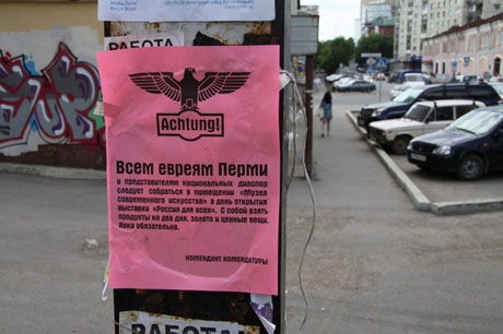 Представители иудейского религиозного общества Перми обратились в правоохранительные органы с просьбой проверить расклеенные по городу листовки. По итогам проверки пермские следственные органы отказались возбуждать уголовное дело в связи с отсутствием состава преступления: лингвистическая экспертиза не обнаружила в тексте листовок признаков разжигания межрелигиозной розни.