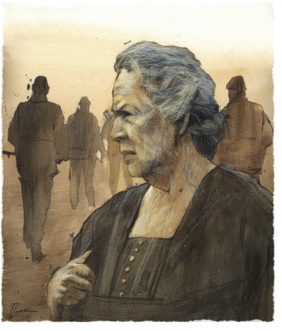 Грузная тетка, приехавшая к внуку-офицеру из Ставрополя с гостинцем-шанежками. Ставрополь. Тоже пыльное слово. Принято считать, что эта зобатая свойская старуха — и есть Родина-мать. Похоже. Ей всегда тесно, душно, жестко, грязно, шумно, жарко. Она всем недовольна: войной, расстоянием, бобыльством внука, запреткой, шлагбаумом, старой формой. Даже хваля дохлый солдатский обед, подпускает в голос металла инспекторского каприза. Мать-генеральша приехала. Пуговку застегнуть, стоять-виноватиться. Все время ее на хребет принимать, подсаживать — и вздохи желчные слушать. Зато и по стриженому ежику погладит — а больше некому. Без Галины Вишневской в этой роли и впрямь никуда — со всей ее властностью, вздорностью, величавостью, государыниным своеволием. Спросом за все, манерой серчать и отходить, и везде чувствовать себя дома. «Долго воюете. Привыкли. Нравится». «Ты всего-навсего мужик, и ты мне не ровня». «Чем-то у вас все время пахнет». Крупнотоннажная мадам-баржа: какой полюбили изображать Родину в поздние самотечные времена, с фильма «Мама». С низкой осадкой. Густым голосом-гудком. Главное — с подзабытым церковным весом прямого высказывания. О том, что матерые, мощные, завидные русские мужики ничего делать не умеют, кроме как стрелять, и уметь не хотят. Что все в разводе, потому что круглый год в командировках и кочевых стойбищах. Что даже на бабу в годах глядят с недоверчивым удовольствием, как на диковинну зверушку. Что у всех ветер в головах, густой и смрадный, как из горелой степи. Что скопления мужчин и железа на малых площадях противоестественны. «Жениться тебе надо», — как всегда заканчивают назойливые соседские тетки. Будь это все сказано зычно, артикулировано, поставленным голосом примы — вышла б неловкость. Но тетка-Родина топочет меж рядами палаток и знай бурчит под нос. Руку подай-ка, как тебя звать-то, чего уставился. Садись на пенек, ешь пирожок. Этому дала и этому дала, а ты и не просил ничего, не ври, тебя не было. Местами ее и слышно-то плохо: Сокуров чужд нажима, заскорузлого педалирования говорящей детали; все впроброс. В чеченской квартире камера скользит по книжным вязанкам в углу до того небрежно, что уложенную поверху «Историю одного города» угадываешь только по характерной обложке, буквы узнать некогда: то ли со смыслом, а то ли просто так. Нет здесь ничего просто так. Только с третьего раза удается прочесть надпись на палатке: «Если ты не свинья — снимай обувь» и оценить ассимиляцию интервентов с исламским Востоком. И пялится бабка через калашниковый прицел на горы не просто так. И индульгенцию сынкам выписывает: «Стрелял не ты один. Упавший — еще не убитый». Спи спокойно. И эта понтярно-пубертатная белая лошадь дыбом на дивизионном шевроне. Разве бело-сине-красных полосочек еще понизу недостает. И сигареты «Пират». Вопреки ожиданиям (Чечня, война-муйня, в воскресенье мать-старушка) как-то это все не позорно выглядит. Родина наша такая и есть. Старая и хмурая. Сварливая. Со всеми на «ты». Никого не боится, но ноги болят. Говорит всегда правильные вещи, но напрочь разучилась держать в узде своих соколов, которые творят что в голову взбредет: много чистят оружие, лязгают по железу тяжелой обувью и совершенно не желают жениться. В то, что надоела и обрыдла, и крепко досадила былым доглядом и вмешательством во все, верить не желае