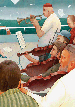 - Первый-пятый, шаг вперед. Фамилия? Совпадает. Эй, четвертый, паспорт покажи. Чего-то ты не похож на фотографию... а вас, черножопых, хрен поймешь. Не пущу вот... А мне плевать, что с четырех утра... Давай-давай, а то милицию вызову.