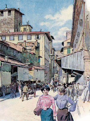 После Uffizi культурно отдыхающий россиянин отправляется в базилику San Lorenzo за Брунеллески и в Capella Medici за Микеланджело. И неожиданно попадает на московский вещевой рынок. Вся Piazza San Lorenzo состоит из палаток, торгующих кожаными сумками, ремнями, ремешками и сумочками. Льет дождь, тенты прогибаются под тяжестью воды, и торговцы мелодично, как в кино, кричат друг другу: «Acqua! Acqua!» - взывая о помощи. «Торгующие в храме!» - праведно записывает он в блокнот, забывая о дешевой и вкусной пицце, съеденной полчаса назад.