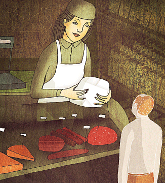 Однако все не так просто. Стоит немного понаблюдать за тем, что происходит в магазинах этой сети, как ответ на вопрос «почему здесь так бессмысленно дорого» становится очевиден. Покупатели платят «Азбуке вкуса» за то, чтобы чувствовать собственную исключительность. Раньше за этим ощущением ходили в «Елисеевский» - он с самого своего открытия славился не только ассортиментом, но и особенной услужливостью продавцов. Сегодня, однако, «Елисеевский» уже не тот: народу много, целыми днями то дряхлые старушки из тверских переулочков за кефиром приходят, то клерки из окрестных офисов стаями прибегают покупать салатики к обеду, к кассе из-за них не протолкнешься. Словом, слишком демократично, несмотря на роскошную позолоту интерьеров. Обещало руководство «Елисеевского» после очередной реконструкции магазина сделать в нем все, как раньше было, при настоящих хозяевах, - с приказчиками, носильщиками и швейцарами, да что-то не сдержало обещаний. Вот и расплодились на безрыбье по всем центральным районам Москвы светлые супермаркеты с нежными бело-зелеными вывесками. Здесь все радует глаз состоятельного клиента: просторно, народу мало, парковка имеется, а самое главное - персонал, который вышколен так, что не уступит и прославленным приказчикам из дореволюционных магазинов. Приходя сюда в первый раз, наверное, чувствуешь себя неловко. У прилавка мешкаешь, стесняясь отвлекать разбирающего товар продавца в безупречно чистом халате. Непонятно, как обратить на себя его внимание, - требовательно кашлянуть? Постучать монеткой по прилавку? Воскликнуть с вопросительной интонацией «Будьте любезны...»? Да нет, все это годится только для татарки Алии из продуктового подвальчика напротив, а тут нужно что-то другое. И в тот самый момент, когда решаешь, что лучше всего просто убежать к чертовой матери из этого напыщенного места, продавец, шестым чувством ощутив ваше присутствие, неожиданно поворачивается и смотрит масляными глазами. - Добрый день. Чего изволите? - Да мне бы лосося свеженького... килограммчик, - ответите ему, еще робея. - Есть ли? - Конечно, - улыбается продавец, - норвежская лососинка у нас, первый сорт, не замораживалась никогда, свежайшая. Сейчас сделаем, будьте покойны! В лучшем виде! И пока он режет рыбу, взвешивает ее на точнейших электронных весах, бережно укладывает в лоточек и затягивает тонкой прочной пленкой, не забывая то и дело посылать вам лучезарные улыбки, вы прямо-таки ощущаете, как неукротимо растет ваше чувство собственного достоинства. А тут уже и рыбка подоспела, продавец, сияя, протягивает ее вам через прилавок. Ошалев от такого приема, вы зачем-то прихватываете в овощном отделе коробочку совершенно, в сущности, ненужной вам спаржи - просто остановились прицениться к редиске, а такая милая продавщица порекомендовала обратить внимание на спаржу, мол, сезон начался, а уж какая польза от этой спаржи!.. и такой, знаете ли, деликатес. Потом опомнитесь, стряхнете ненадолго охватившее вас наваждение и попытаетесь совершать покупки строго по составленному заранее списку: батон надо взять, яиц, пару шоколадок (обычный горький шоколад, ничего особенного, но настоящий, швейцарский, не чета нашему), масла сливочного, йогуртов на завтрак, колбаски. Вроде бы все, ничего не забыл... Подвезете тележку к кассе, за ней ласковая девушка-красавица