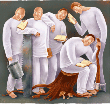 I. Жизнь в Чичёво преобразилась два с половиной года назад, когда тут появился реабилитационный центр для наркоманов, куратором которого выступил Российский союз христиан веры евангельской, проще говоря пятидесятники. К их дому Олимпиада Ивановна ведет меня вдоль бывшего поля, которое теперь превратилось в мелколесье: больше десяти лет в Чичёво никто не пашет и не косит. Окрестные фермы разобрали дачники, их теперь тут примерно в 10 раз больше, чем местных (на 6 домов аборигенов 50 домов отдыхающих). Минувшим летом на непаханом поле развернулись военные действия: впервые в жизни Олимпиада Ивановна увидела тогда живьем сразу трех генералов как потом выяснилось, из ФСБ, МВД и МЧС. Они появились в деревне Орехово-Зуевского района, за 101-м километром от Москвы после того, как там разбила свой лагерь церковь армян-пятидесятников «Божья обитель». Захват кавказцами русского села мгновенно стал главной местной новостью. II. Встречает меня во дворе духовный наставник (без пяти минут пастор) Дмитрий Гаврилов, в шортах и шлепанцах по мокрому снегу. Спрашивает по мобильному разрешения у помощника Сергея Ряховского (главы пятидесятников России), а потом ведет в дом. Я попадаю к обеду и сразу встаю как вкопанный, завидев такую картину: длинный стол с лавками, а на них тринадцать мужиков, по виду явно не работников офисных центров. Двадцать восемь пар глаз (во главе с духовным наставником) жадно вглядываются в передачу спутникового канала God TV, а когда пастор из Казахстана заканчивает рассказ о чудесах, произошедших с каким-то протестантом под Семипалатинском, братия вдруг, без чьего-то приказа, громко, хором принимается за предобеденную молитву. «Вот это и есть наша методика излечения от наркомании», разъясняет сразу после «Аминь!» Дмитрий, ставя передо мной большую тарелку картошки с мясом. Обильная еда, как позже выясняется тоже часть лечебной программы. Из тринадцати мужиков одиннадцать из дальних регионов России, это специально предусмотрено программой пятидесятников по реабилитации наркоманов, благодаря которой в России действует уже около 300 центров, подобных тому, что в Чичёво. «Вот я из Осинников Кемеровской области. У нас в области есть три таких центра. Но я здесь, потому что там велик шанс, что я не выдержу и убегу за очередной дозой. А тут куда бежать», говорит Роман. И действительно, до ближайшей автобусной остановки километра два (да и автобус ходит только четыре раза в сутки). Но пятидесятники предусмотрели и такое развитие событий, и все девять месяцев, что наркоманы лечатся молитвами, никаких денег, даже карманных, им иметь не разрешается. «Но мало, мало все же девяти месяцев, надо бы года два, сокрушается духовный наставник Дмитрий. Особенно для тяжелых случаев, например, для игроманов». «Да, был у нас такой как зомби ходил, руки тряслись. Я, наркоман со стажем, даже торчков таких не видел», вступает в разговор Роман. Обед заканчивается, и по расписанию, строго соблюдаемому, у пациентов наступает время изучения Библии. Они ложатся на кровати и приступают к лечебным процедурам. Только двое из братии, самые молодые на вид, остаются прибирать на кухне. Слово духовного наставника для всех здесь закон. И по всем повадкам пациентов видно, что Дмитрий в этом мужском коллективе не просто начальник, но и авторитет. Те самые генералы, как свидете