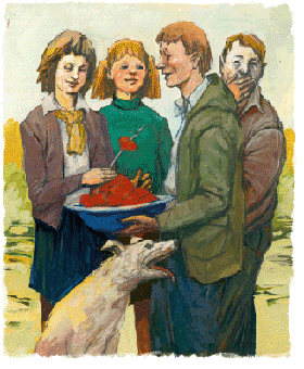 Девушки собрались к обеду, очень довольные и внимательные. Пока мы знакомились, глаза их искали жареного и съестного.