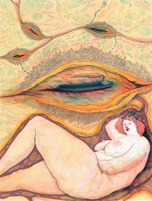 А по законам романа «Блуда и МУДО» - сакральная в квадрате, в кубе. Моржову дано видеть, как сквозь кожу томимой похотью женщины, подобно Особи из одноименного кино, проступает мерцоид: ее двойник-соперник, не умеющий отнекиваться и лицемерить. Сперва кажется, что мерцоид всего лишь олицетворение физиологического влечения. Но ближе к эпилогу один из женских персонажей погибает, и нам уготован шок. Девушка Аленушка мертвехонька, а ее мерцоид цел; он боится щекотки, движется, разговаривает с Моржовым. Так вот что спасал герой на протяжении пятисот с лишним страниц, вот что в меру разумения и доступных средств высвобождал в ближних: не либидо, а душу.